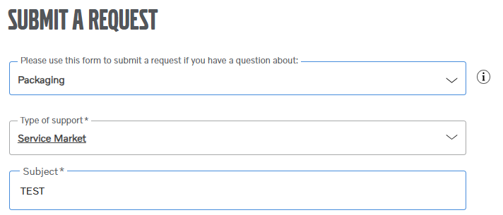 If the previous “Type of support” categories does not reflect the issue, then the option “Other” is to be used to enable submitting a ticket towards the packaging operation team.
