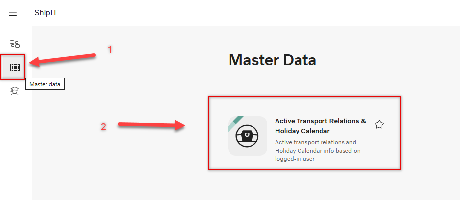 Go into the master data section of ShipIT and select "Active Transport Relations & Holiday Calendar".